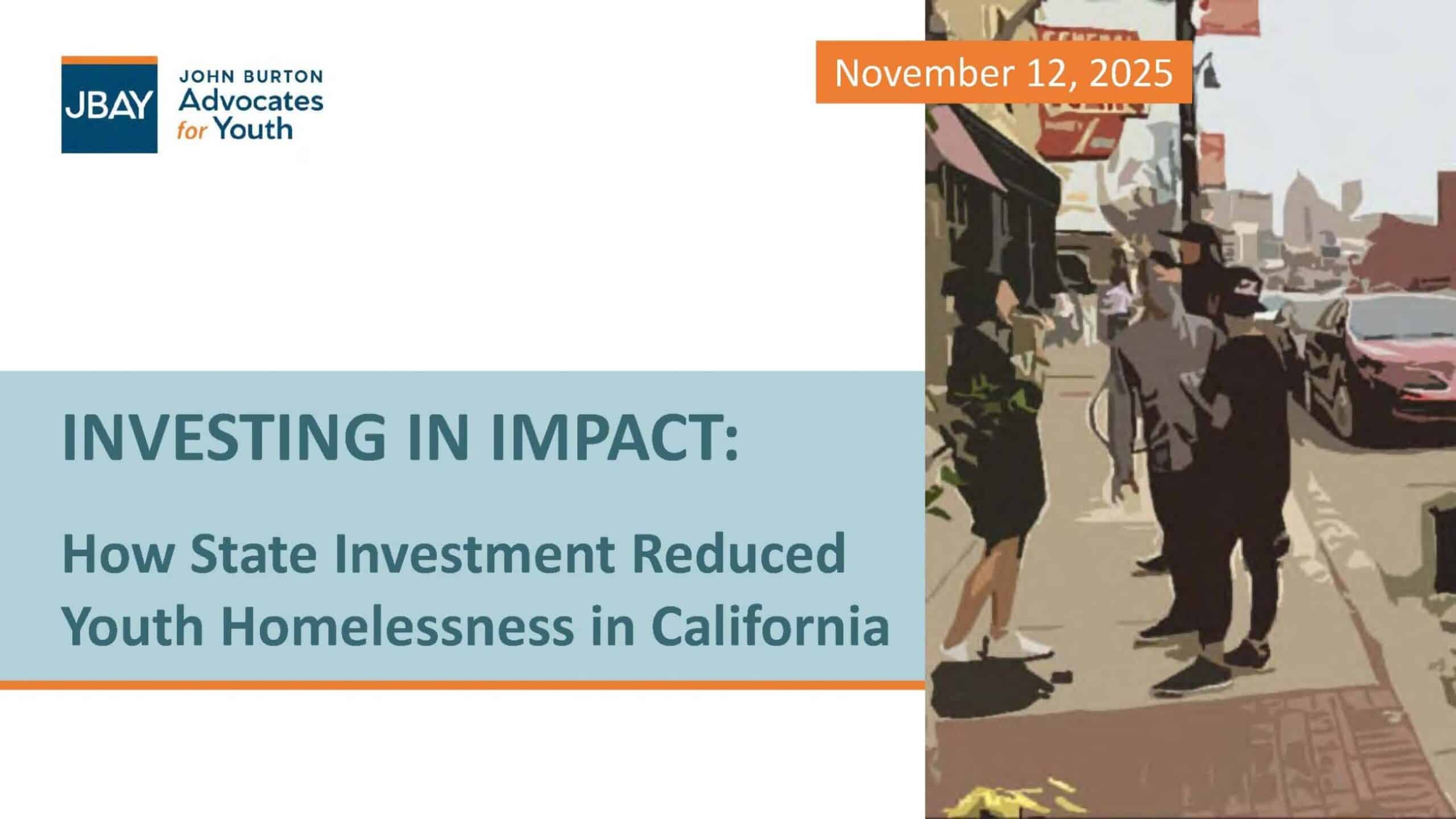 https://youtu.be/KKJBYXaFzPI John Burton Advocates for Youth and Youth Law Center hosted a virtual policy update for California stakeholders on the federal Foster Youth to Independence (FYI) voucher program, joined by a representative from the U.S. Department of Housing and Urban Development’s (HUD) San Francisco’s Field Office. Amid enacted and proposed cuts to many parts of […]