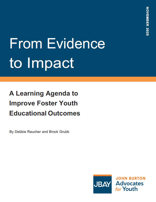 This webinar, hosted by John Burton Advocates for Youth (JBAY), provided an in-depth exploration of Satisfactory Academic Progress (SAP) policies and their implications for equity in higher education. The session highlighted findings from JBAY’s multi-year research, including the “Overlooked Obstacle” reports, which revealed how strict SAP requirements disproportionately impact low-income and minoritized students, particularly foster youth and students of color. Key topics included the challenges of maintaining financial aid under SAP standards, the role of AB 789 in standardizing SAP policies across California institutions, and the results of JBAY’s audits of institutional compliance with AB 789. The webinar also shared insights from a comprehensive dataset of California Community Colleges, exploring SAP, financial aid retention, and graduation outcomes for Pell Grant, Cal Grant B, and CCPG recipients.