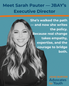JBAY’s work over the past two decades has paved the way for leaders like Sarah—people whose lives were shaped by the very systems JBAY has fought to reform. The policies and programs born of this work enabled Sarah and thousands of others like her to imagine a future beyond survival. Now, she leads the organization that helped make that future possible.